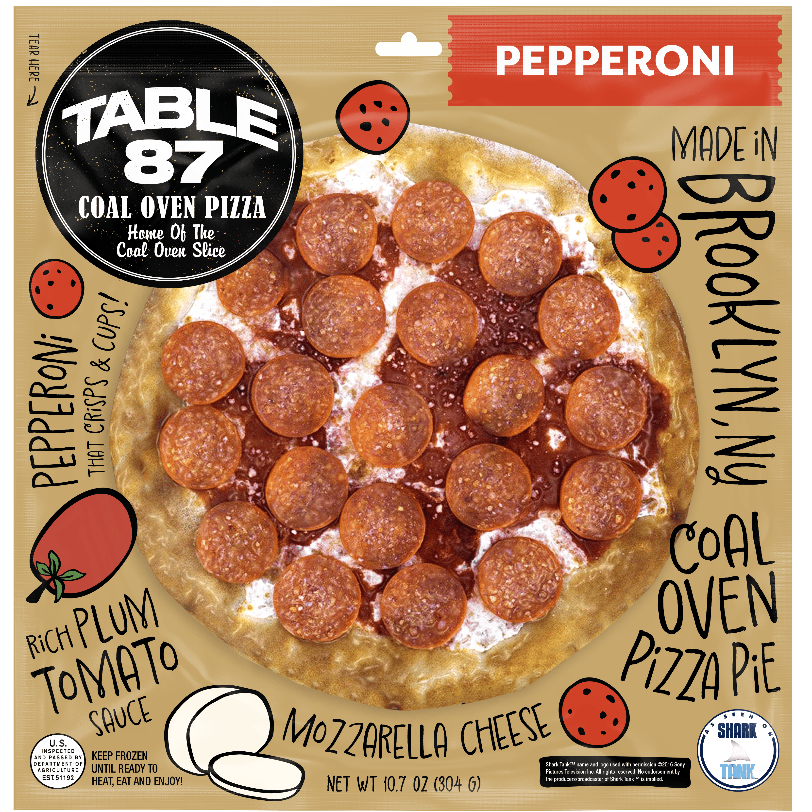 The 10" Pepperoni Pizza Pie is handmade and baked in Brooklyn, New York. Table 87's coal oven pizza has a slightly charred, crispy crust that's topped with a tangy tomato sauce, mozzarella, and sprinkled grana cheese. The slice is fully cooked, flash frozen, and vacuum sealed in packaging to ensure freshness and to prevent ice crystallization (aka freezer burn). The pie is finished with Hormel's Rosa Grande "Cup & Char" Pepperoni and ready to go from freezer to plate in minutes. The classic style of cup & char pepperoni is extremely popular and delicious. Table 87 & Hormel partnered to co-brand this product.